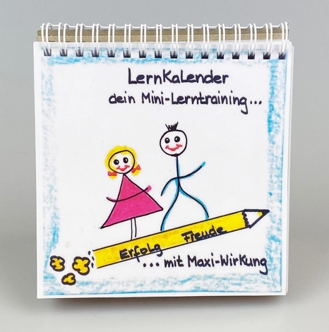 Mit dem Mini-Lernkalender probierst du einfache und lustige Lernwerkzeuge aus, die dir helfen, Neues leichter im Gedächtnis zu behalten und dich daran zu erinnern, wenn du es brauchst. Du bindest dabei deine Augen, deine Stimme, deine Ohren, sogar deinen ganzen Körper ein, um eine Maxi-Wirkung in deinem Lernerfolg zu erleben.